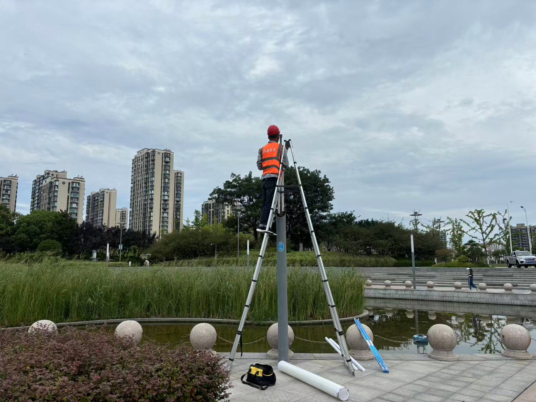 針對部分沿河燈具因人為踩踏、駁岸風(fēng)化等原因造成的底座松動,維護(hù)團(tuán)隊及時采取加固措施,通過加裝地錨、使用加固材料等方式消除隱患,全力保障園區(qū)亮化設(shè)施亮燈率穩(wěn)定在97%以上。