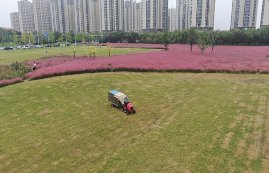 與空中溫柔的粉色花海相呼應,腳下的草坪也正迎來一場細致的秋日煥新。眼下正值草坪養護的關鍵時期,建發公司組織綠化養護單位利用秋季生長的黃金窗口,操作專業修剪機對整體草坪進行精準修剪,有效控制草高、促進分蘗,為越冬積蓄能量。除了精細修剪外,養護人員還將陸續開展草坪打孔通氣、補播草籽、施肥、除草等一系列措施。這些操作不僅增強土壤透氣性,促進根系深扎,更能幫助草坪在入冬前儲備充足養分,提升抗寒能力,為來年春天順利返青、長勢更旺打下堅實基礎。
