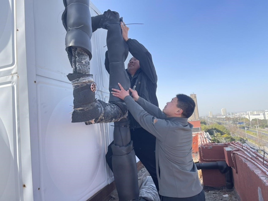 與此同時,常年佇立的戶外設施也紛紛披上量身定制的“保溫外衣”。工作人員采用專用保溫材料,對這些設施進行嚴密封裹與加固,確保在嚴寒天氣中仍能正常運行,有效防范因凍脹、凍裂引發的供水中斷或消防安全隱患。